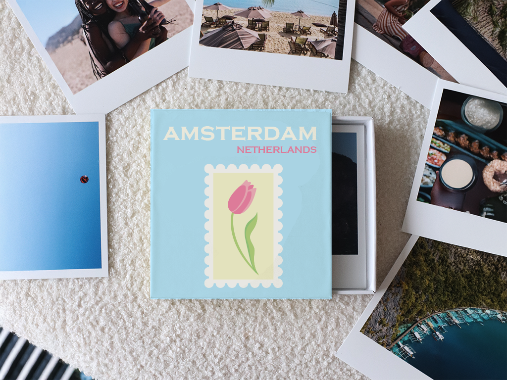 Create your Amsterdam Tulip Photo Prints Box today and turn your favourite snapshots into a collectible instant photo style vintage print set, beautifully stored and ready to be revisited whenever you open the lid.