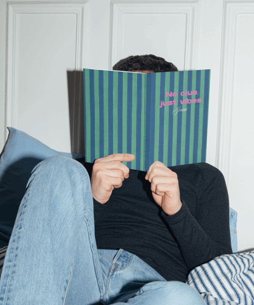 Whether you’re looking for a new daily planner, a creative journal, or a blank canvas for your ideas, this original design lets you do it your way. Make the No Clue, Just Vibes Notebook uniquely yours by: